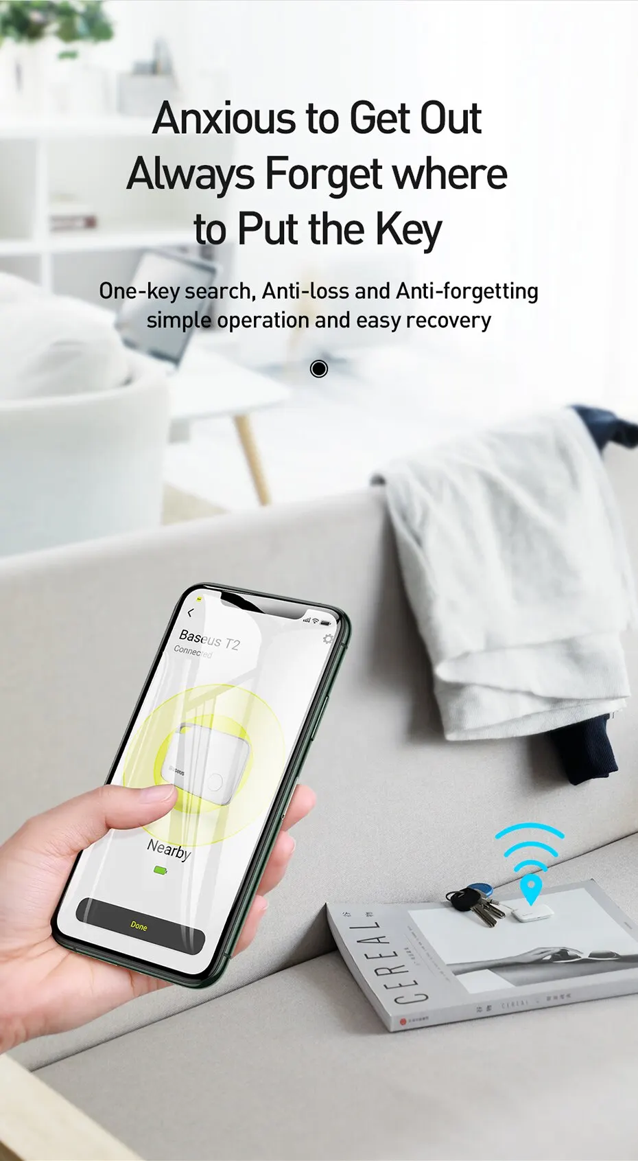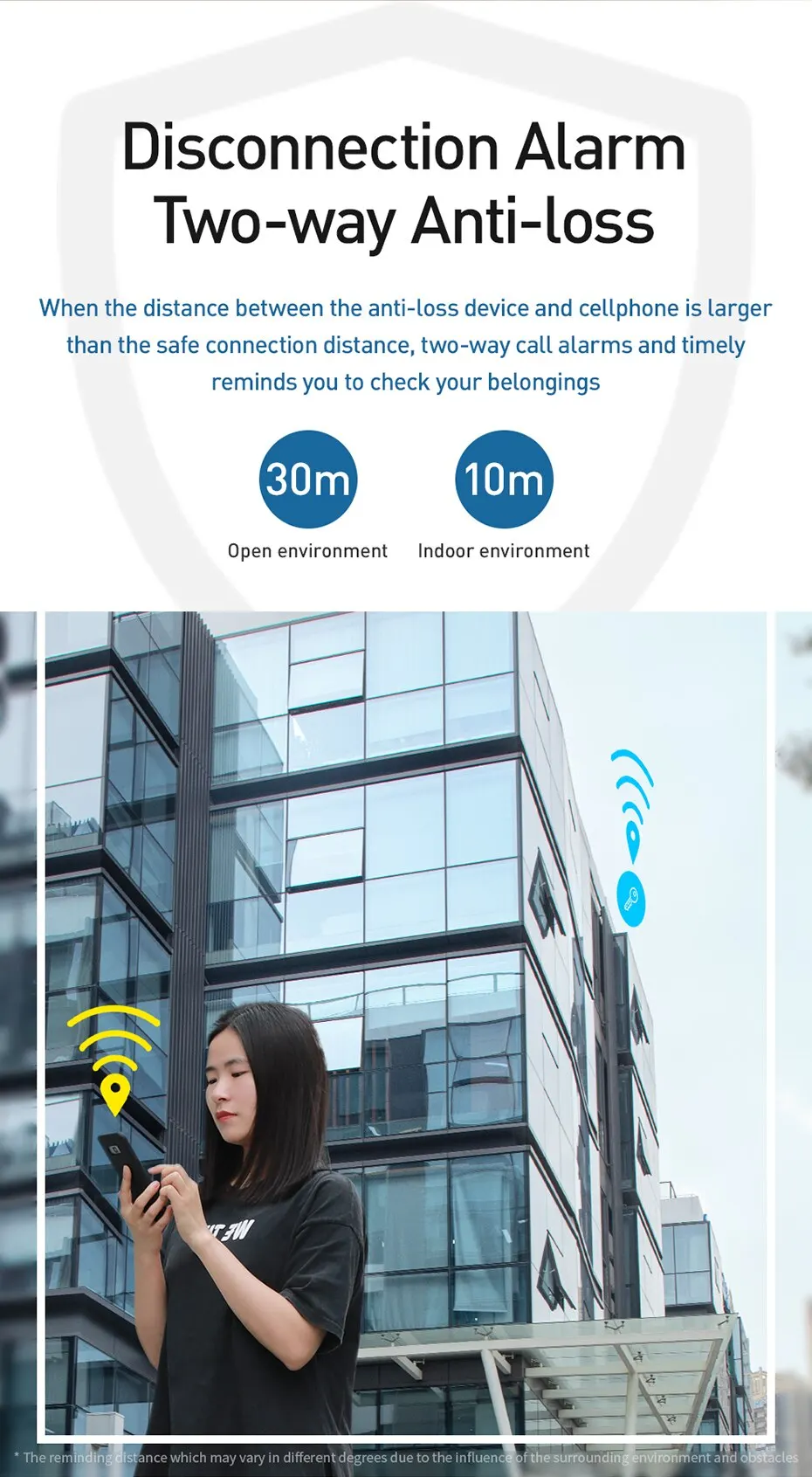 Monitore o paradeiro dos itens em tempo real interligando o dispositivo anti-perda ao APP do celular, para evitar que os itens sejam perdidos e encontrá-los a tempo